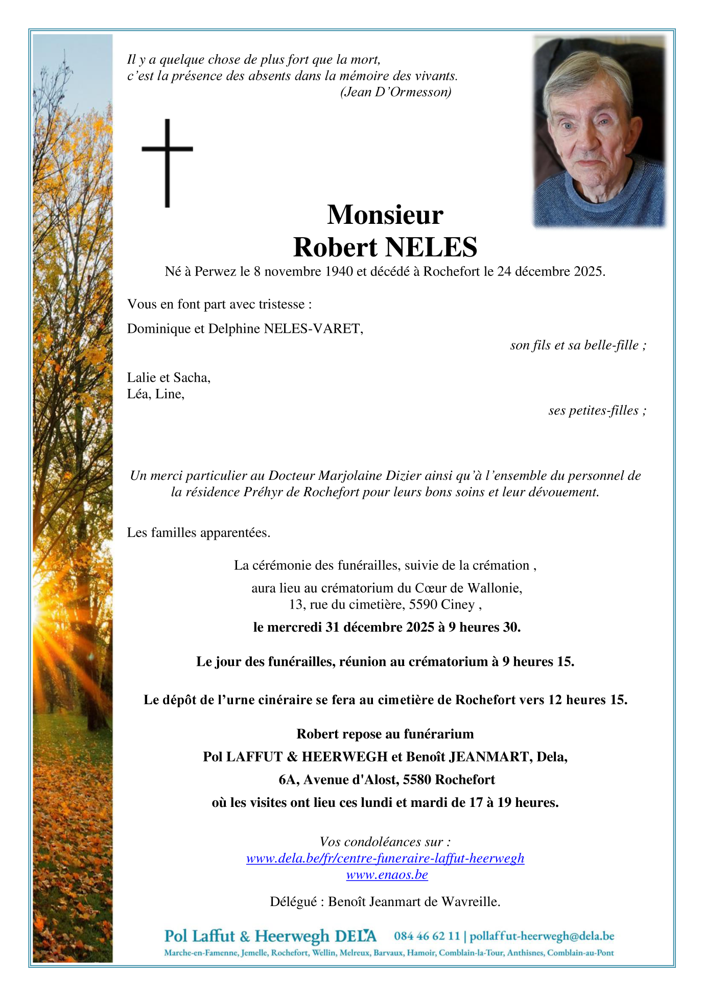 Décédé à Rochefort (5580, Belgique) le mercredi 24 décembre 2025 à l'âge de 85 ans