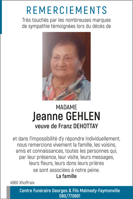 Madame Jeanne GEHLEN veuve de Franz DEHOTTAY