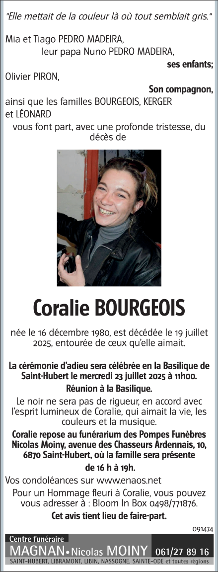 Décédée à Libramont (6800, Belgique) le samedi 19 juillet 2025 à l'âge de 44 ans
