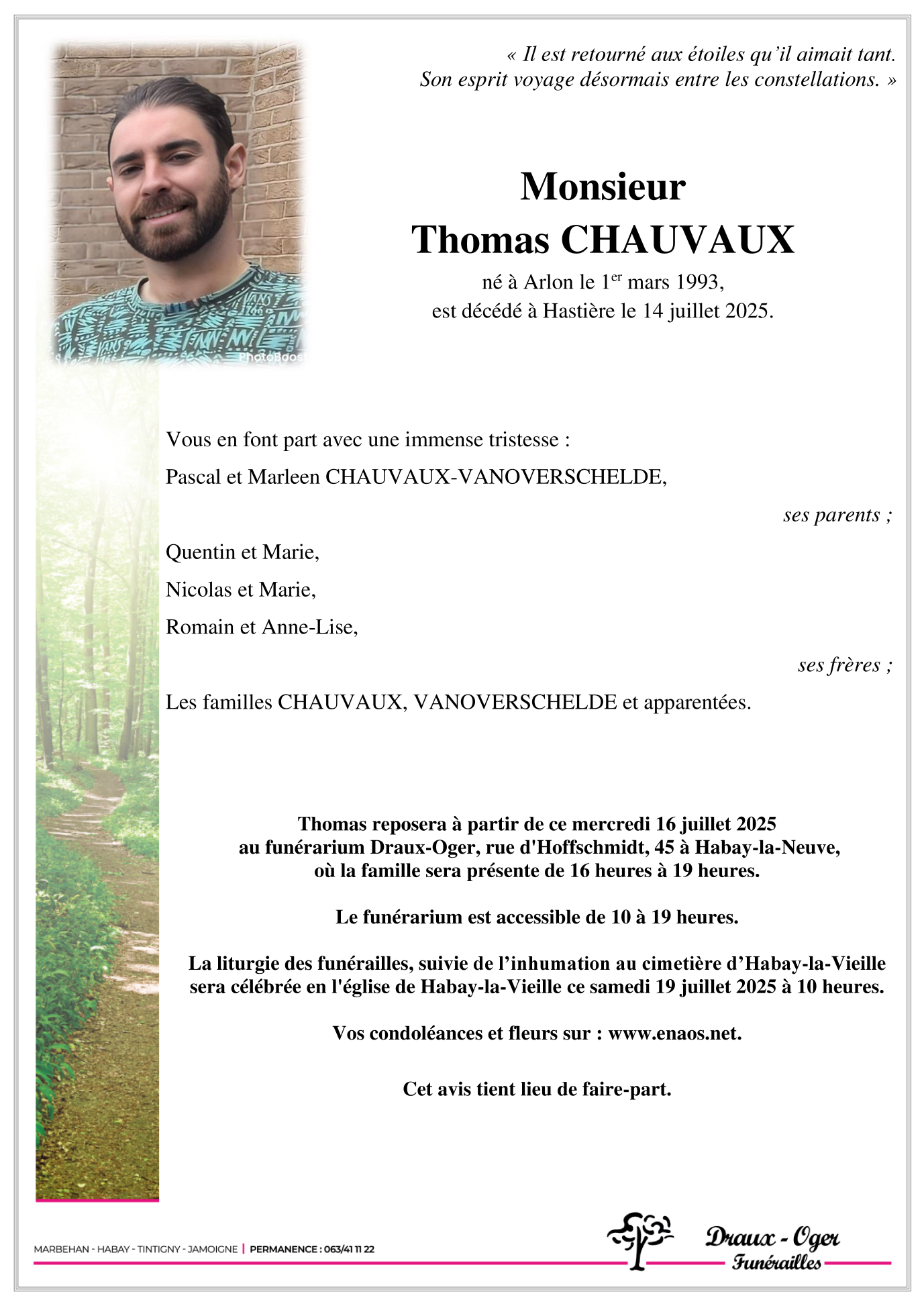 Overleden te Hastière (5540, België) op maandag 14 juli 2025 op 32-jarige leeftijd