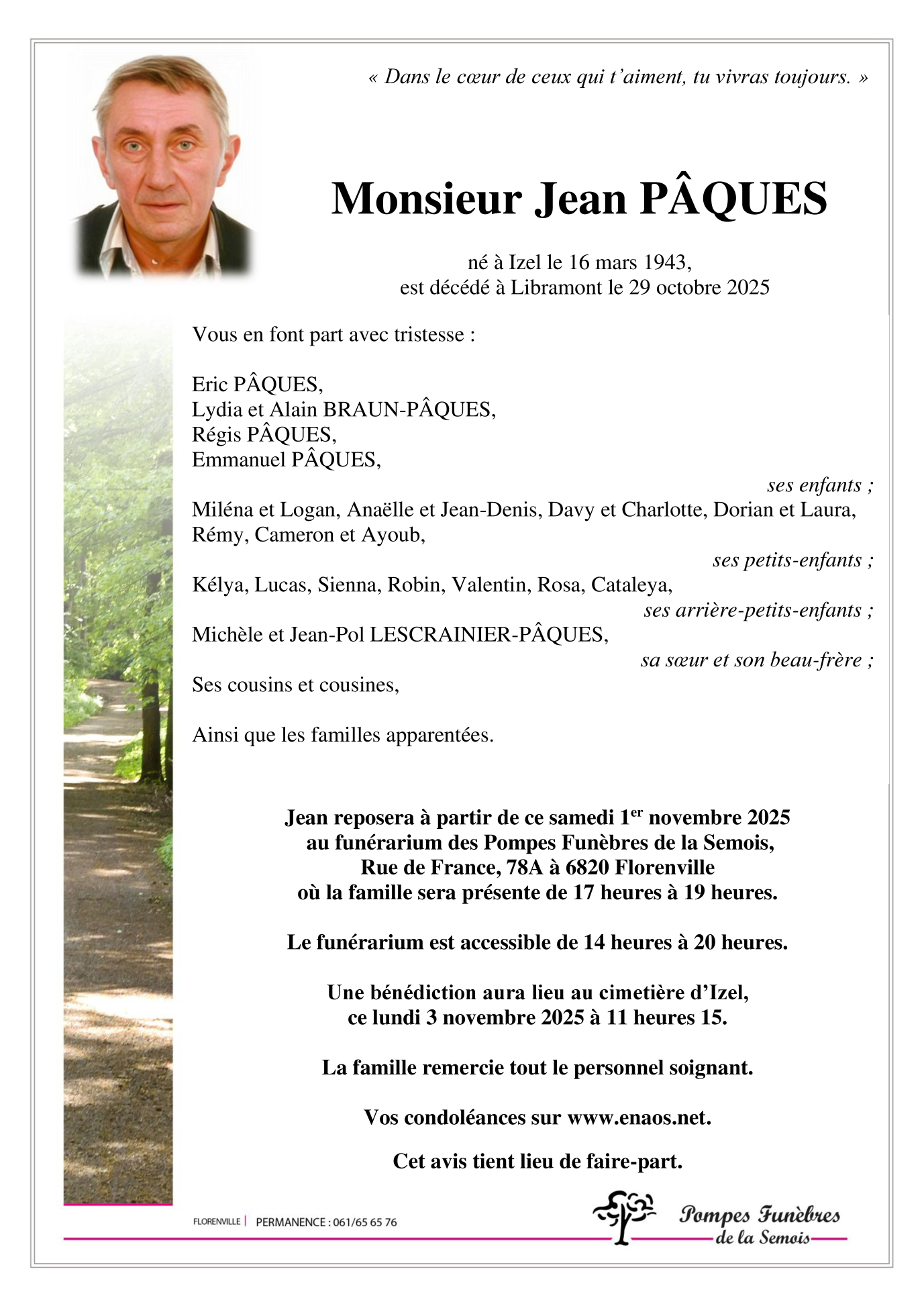 Né à Izel (6810, Belgique) le mardi 16 mars 1943