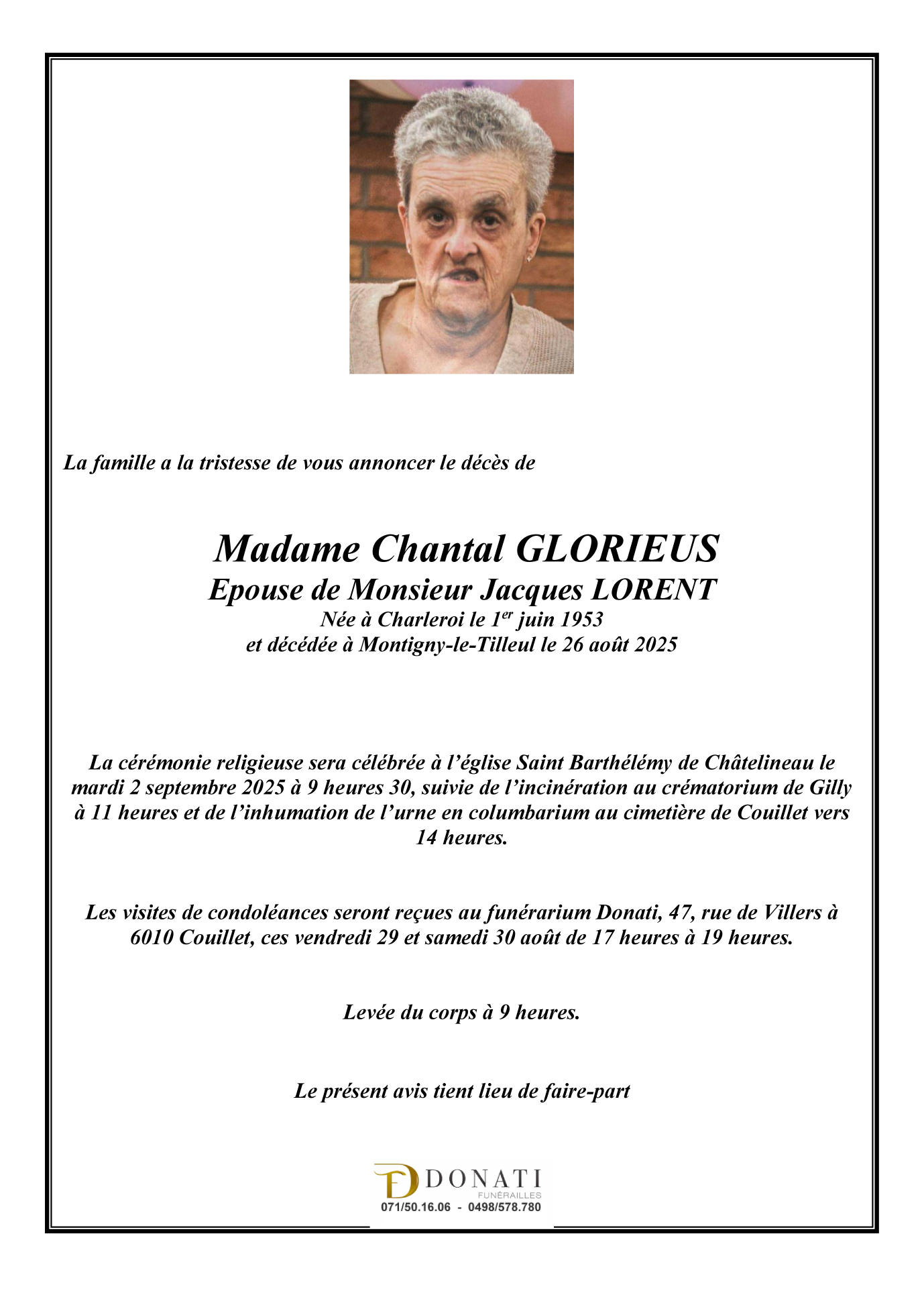 Died in Montigny-le-Tilleul (6110, Belgium) on 26 August 2025 at the age of 72 years