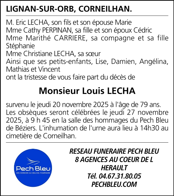 Décédé à Lignan-sur-Orb (34490, France) le jeudi 20 novembre 2025 à l'âge de 79 ans