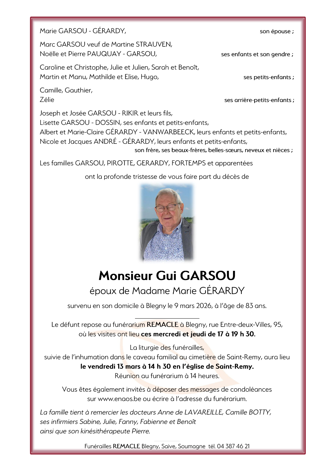 Décédé à Blegny (4670, Belgique) le lundi 9 mars 2026 à l'âge de 83 ans