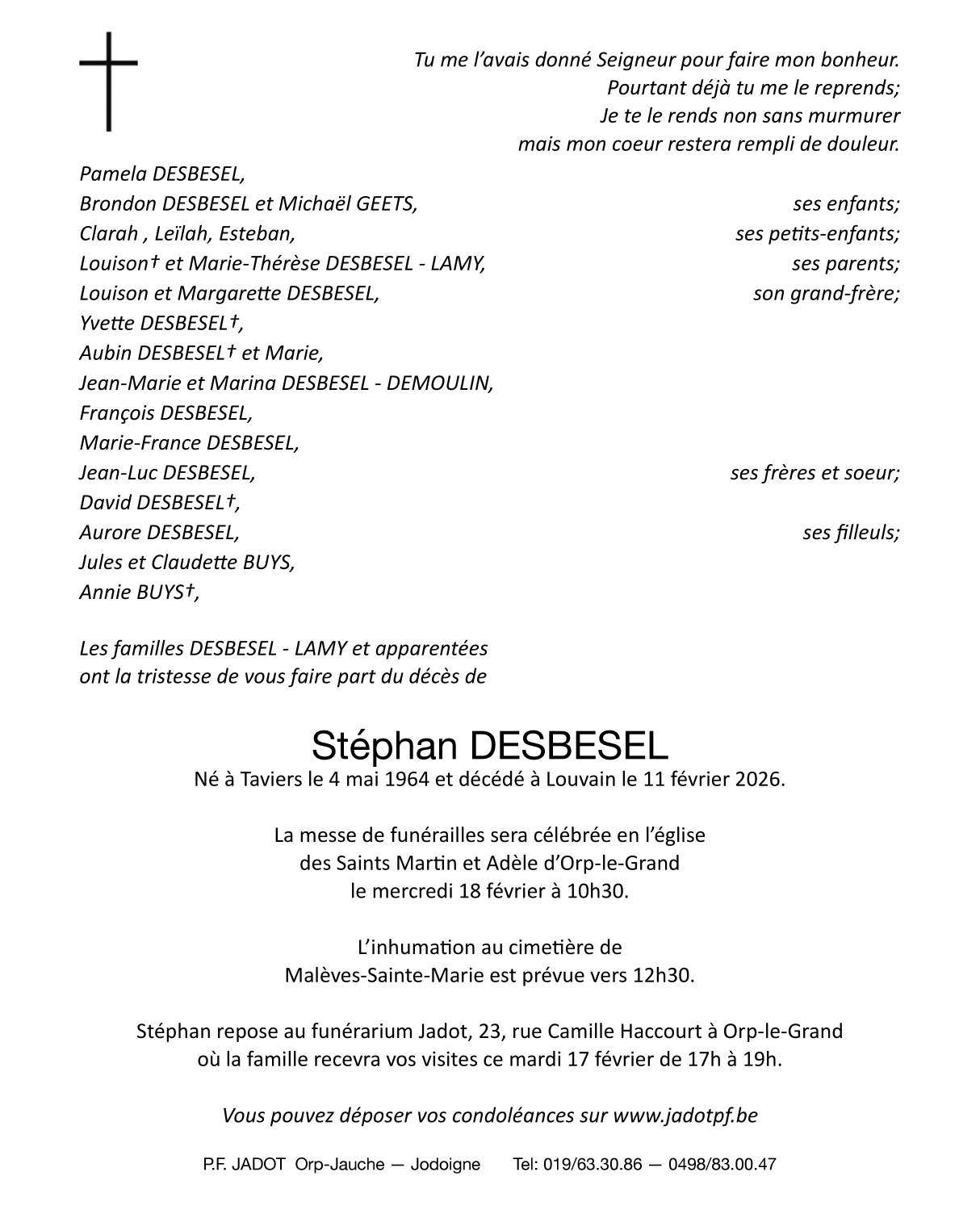 Décédé à Leuven (3000, Belgique) le mercredi 11 février 2026 à l'âge de 61 ans