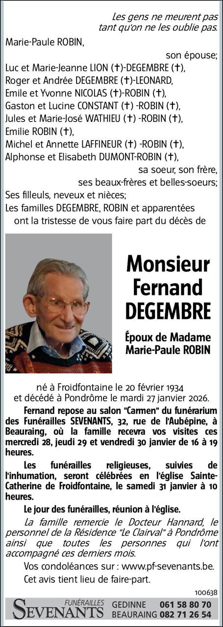 Décédé à Pondrôme (5574, Belgique) le mardi 27 janvier 2026 à l'âge de 91 ans