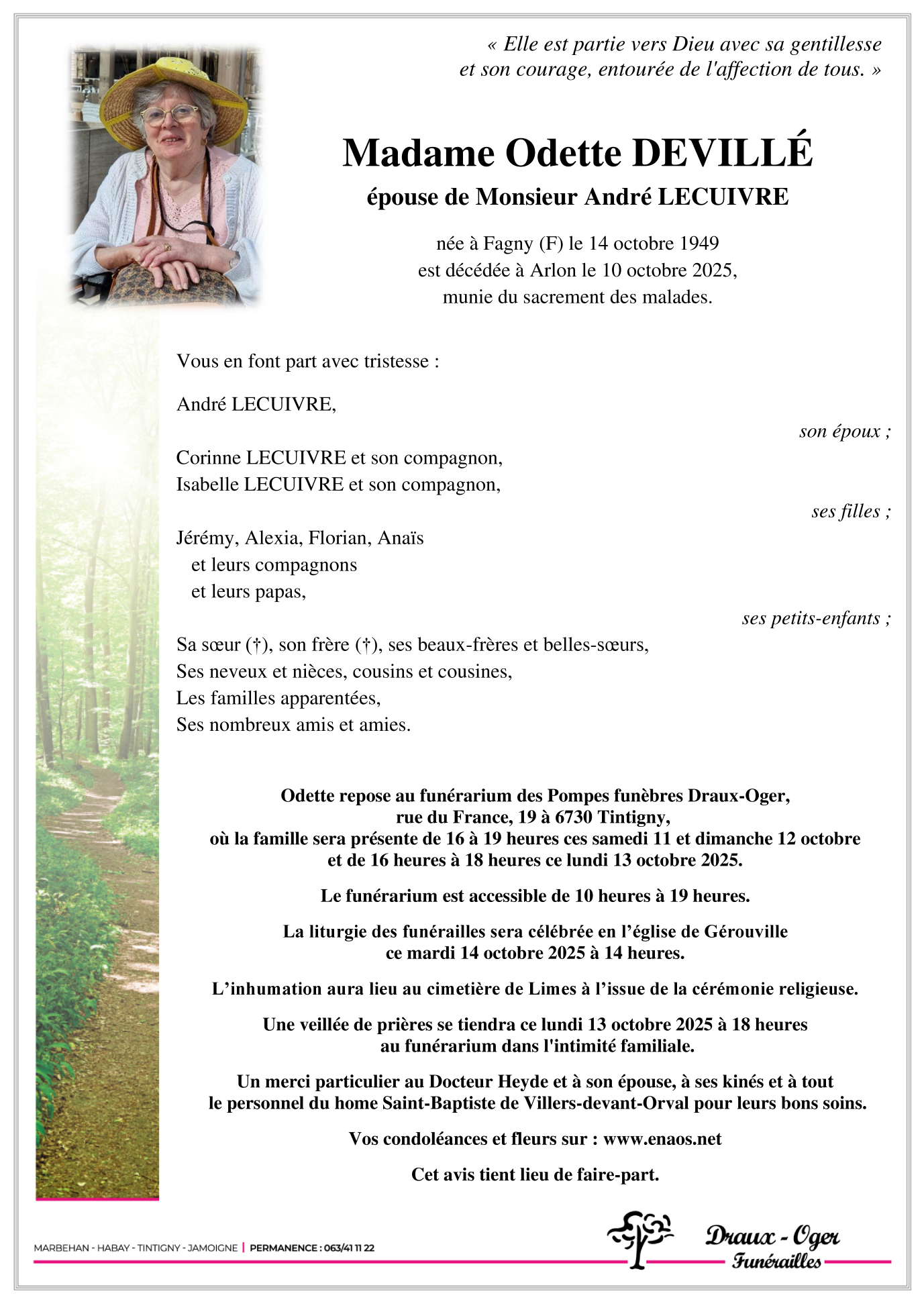 Died in Arlon (6700, Belgium) on 10 October 2025 at the age of 75 years