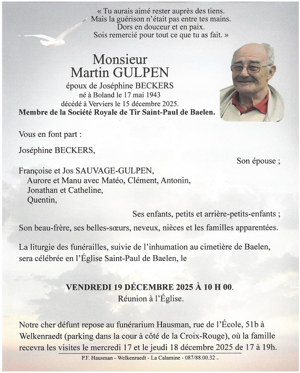 Décédé à Verviers (4800, Belgique) le lundi 15 décembre 2025 à l'âge de 82 ans