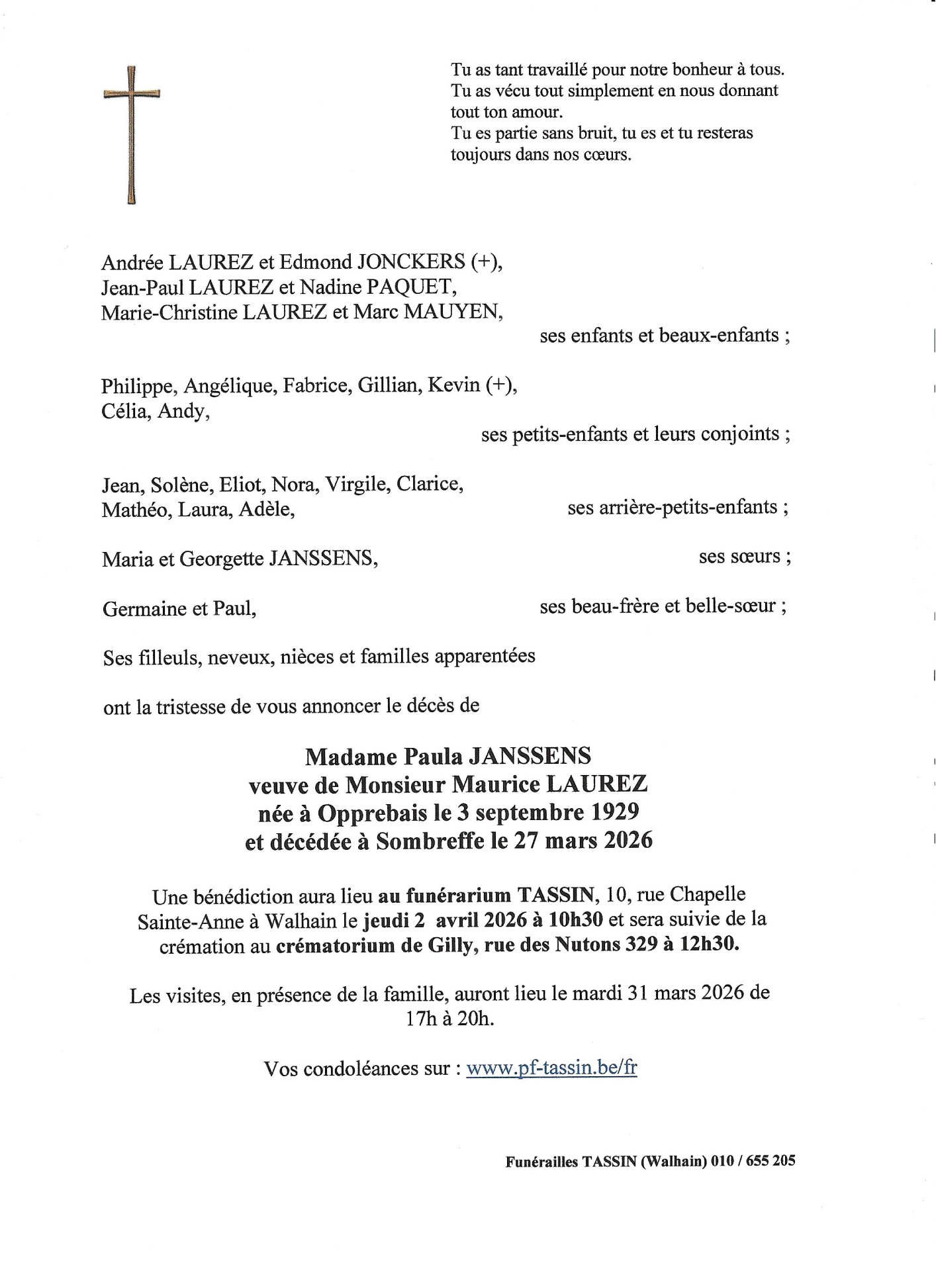 Madame Paula LAUREZ née JANSSENS