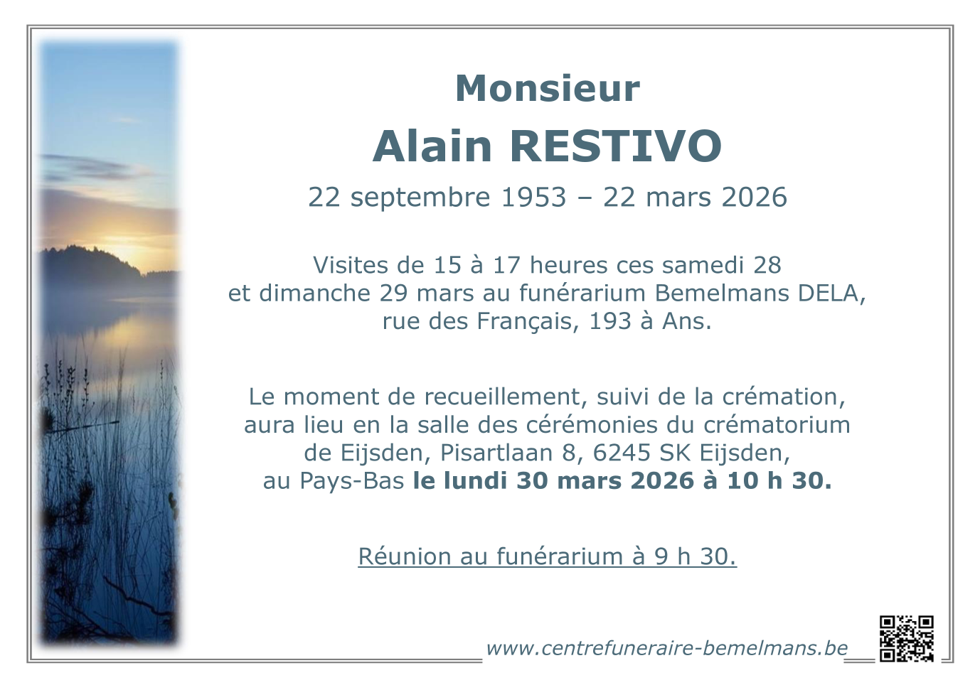 Décédé à Rochefort (5580, Belgique) le dimanche 22 mars 2026 à l'âge de 72 ans