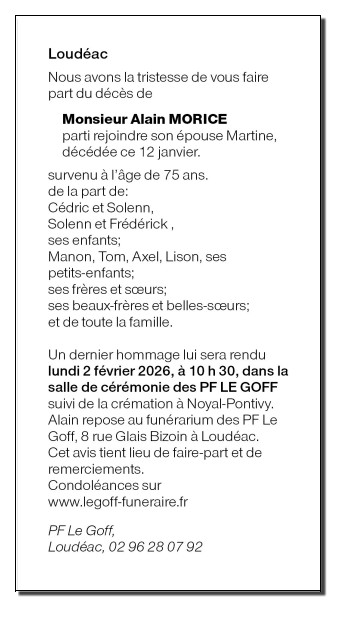 Décédé à Loudéac (22600, France) le mercredi 28 janvier 2026 à l'âge de 75 ans