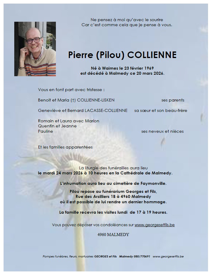 Fallecido en Malmedy (4960, Bélgica) el viernes, 20 de marzo de 2026 a la edad de 57 años