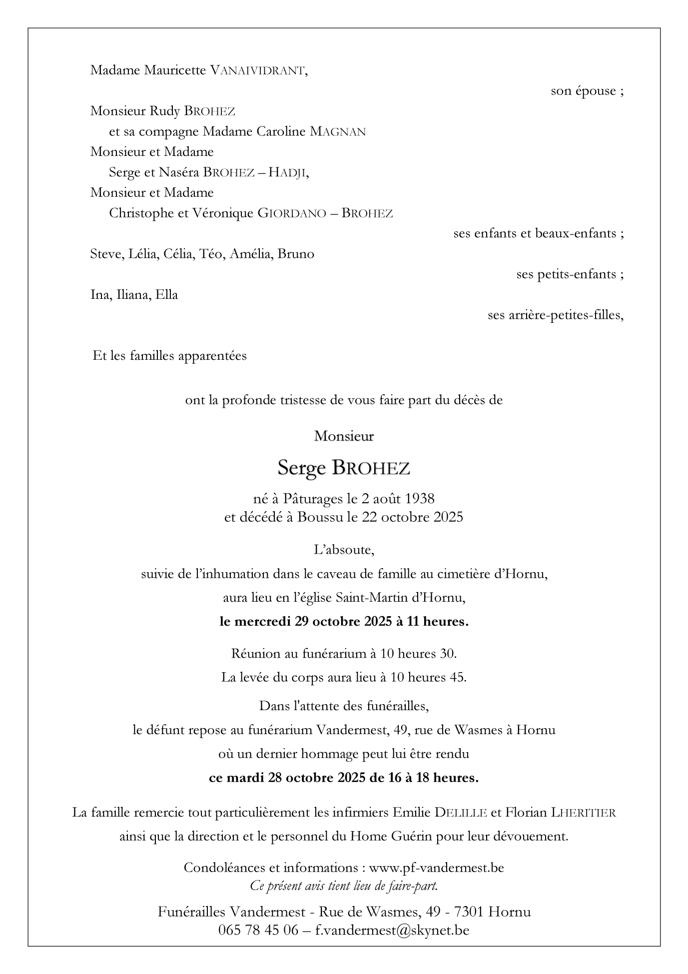 Décédé à Boussu (7300, Belgique) le mercredi 22 octobre 2025 à l'âge de 87 ans