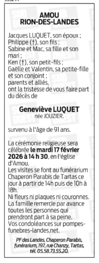 Madame Geneviève LUQUET née JOUZIER