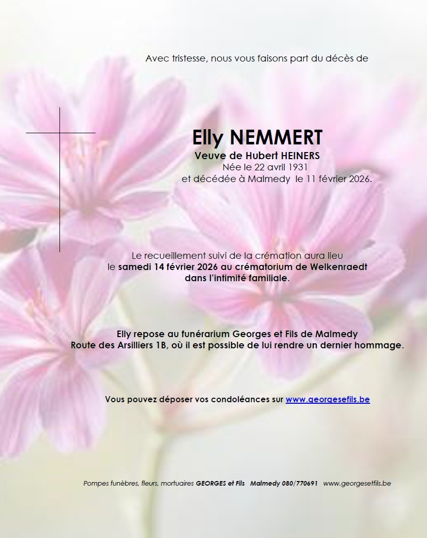 Madame Elly NEMMERT veuve de Hubert HEINERS