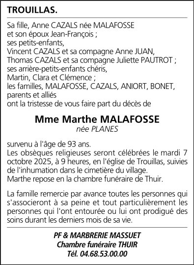 Madame Marthe MALAFOSSE née PLANES