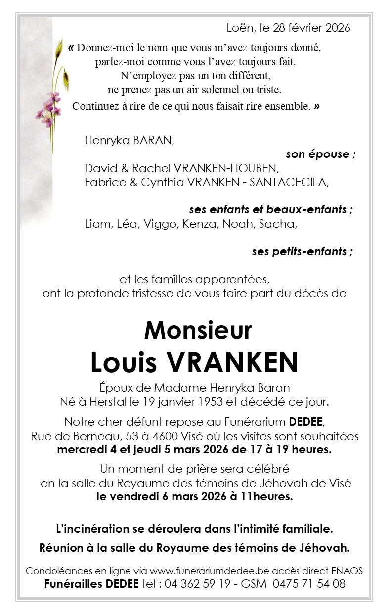 Décédé à Liège (4000, Belgique) le samedi 28 février 2026 à l'âge de 73 ans