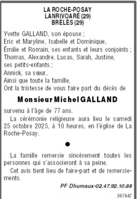 Décédé à Poitiers (86000, France) le mardi 21 octobre 2025 à l'âge de 77 ans