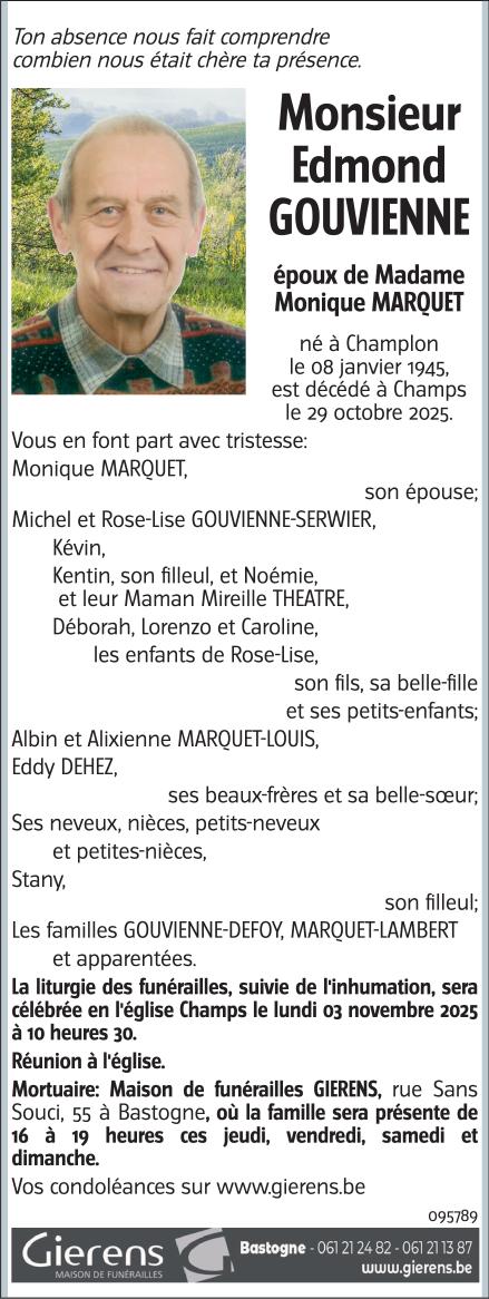 Fallecido en Bertogne (6687, Bélgica) el miércoles, 29 de octubre de 2025 a la edad de 80 años