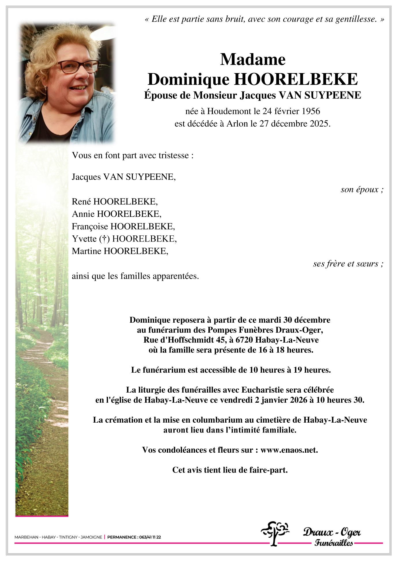 Fallecida en Arlon (6700, Bélgica) el sábado, 27 de diciembre de 2025 a la edad de 69 años