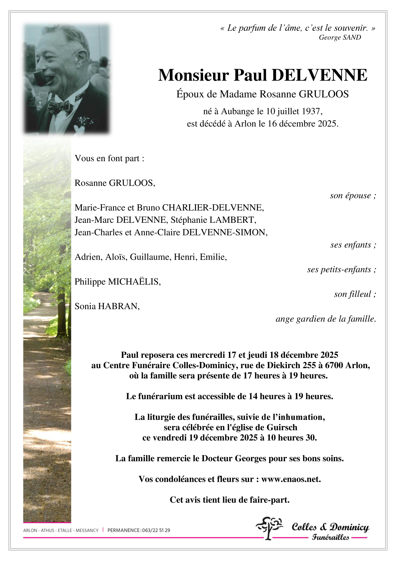 Décédé à Arlon (6700, Belgique) le mardi 16 décembre 2025 à l'âge de 88 ans