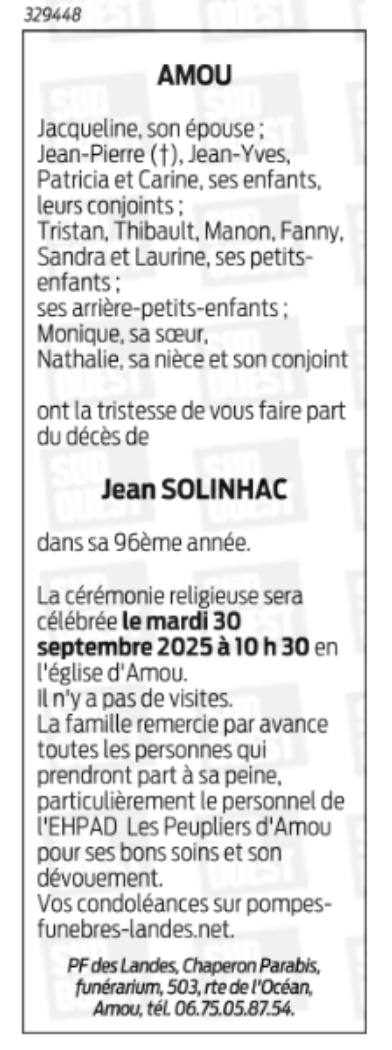Décédé à Amou (40330, France) le samedi 27 septembre 2025 à l'âge de 95 ans