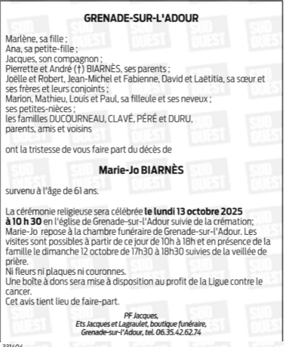 Overleden te Saint-Pierre-du-Mont (40280, Frankrijk) op woensdag 8 oktober 2025 op 61-jarige leeftijd
