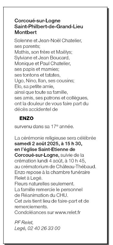 Died in Nantes (44000, France) on 27 July 2025 at the age of 16 years
