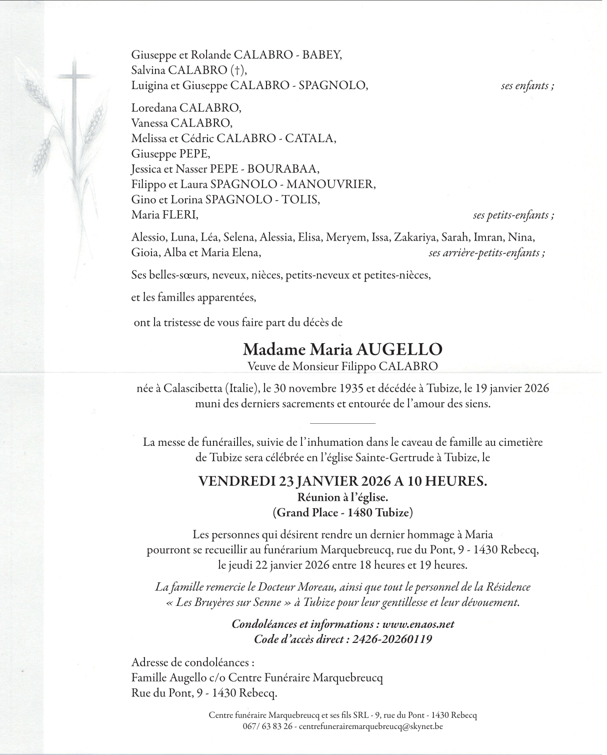 Overleden te Tubize (1480, België) op maandag 19 januari 2026 op 90-jarige leeftijd