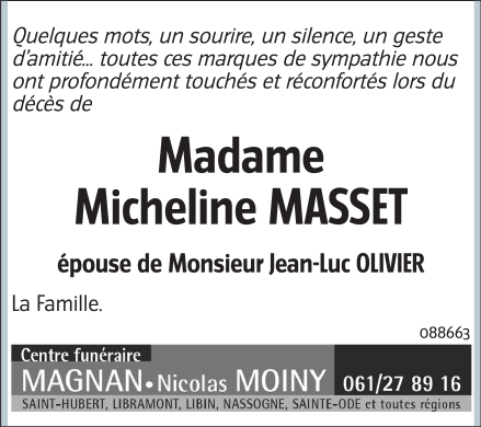 Née à On (6900, Belgique) le mercredi 13 octobre 1954