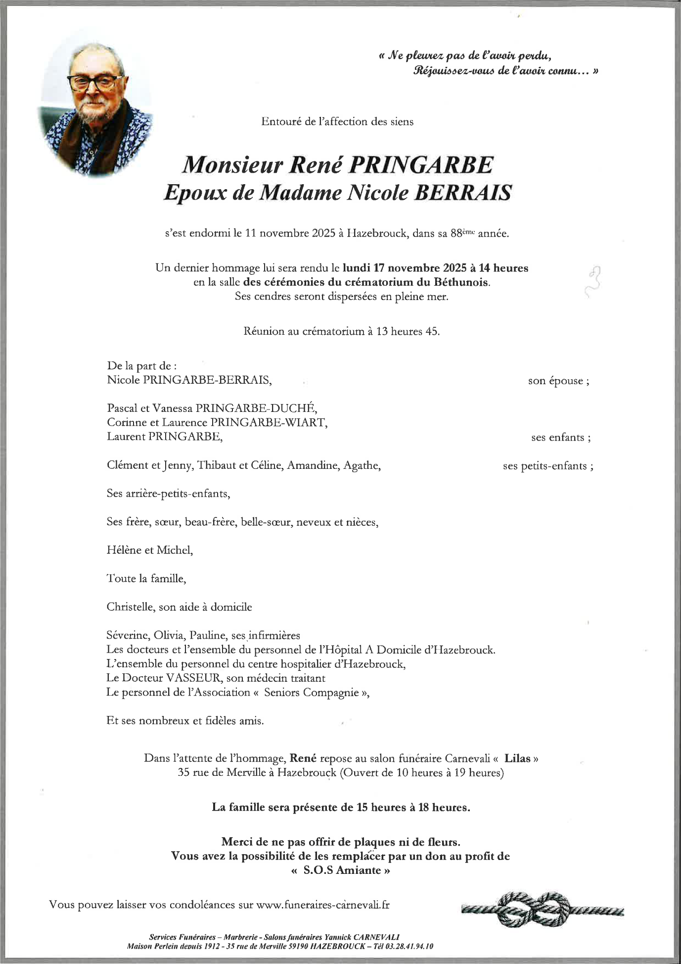 Overleden te Hazebrouck (59190, Frankrijk) op dinsdag 11 november 2025 op 87-jarige leeftijd