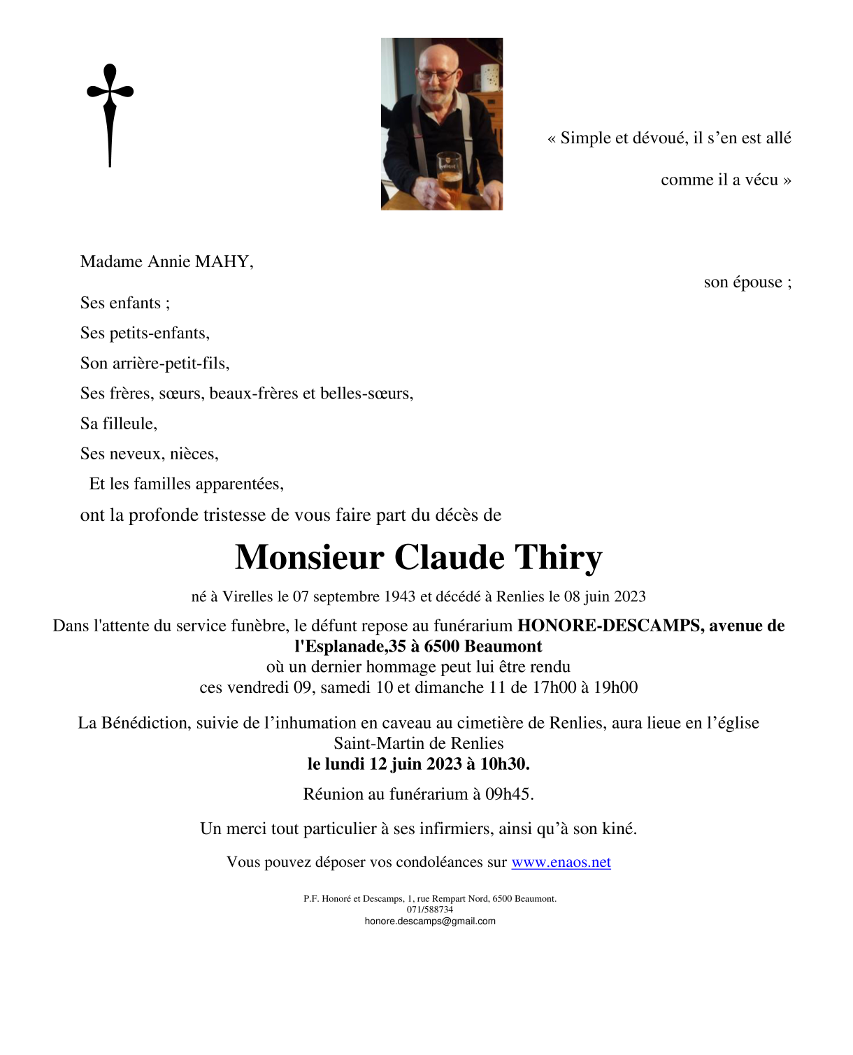 Décédé à Renlies (6500, Belgique) le jeudi 8 juin 2023 à l'âge de 79 ans