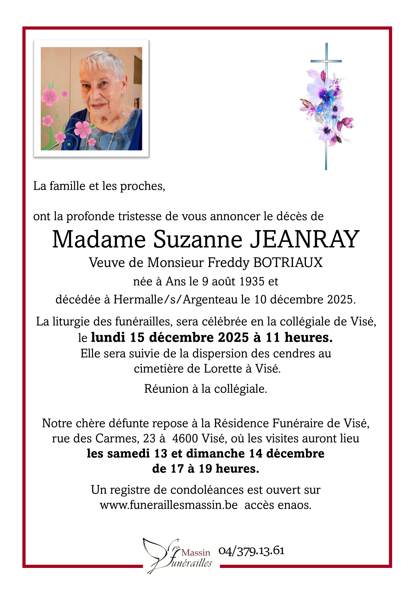 Née à Ans (4430, Belgique) le vendredi 9 août 1935