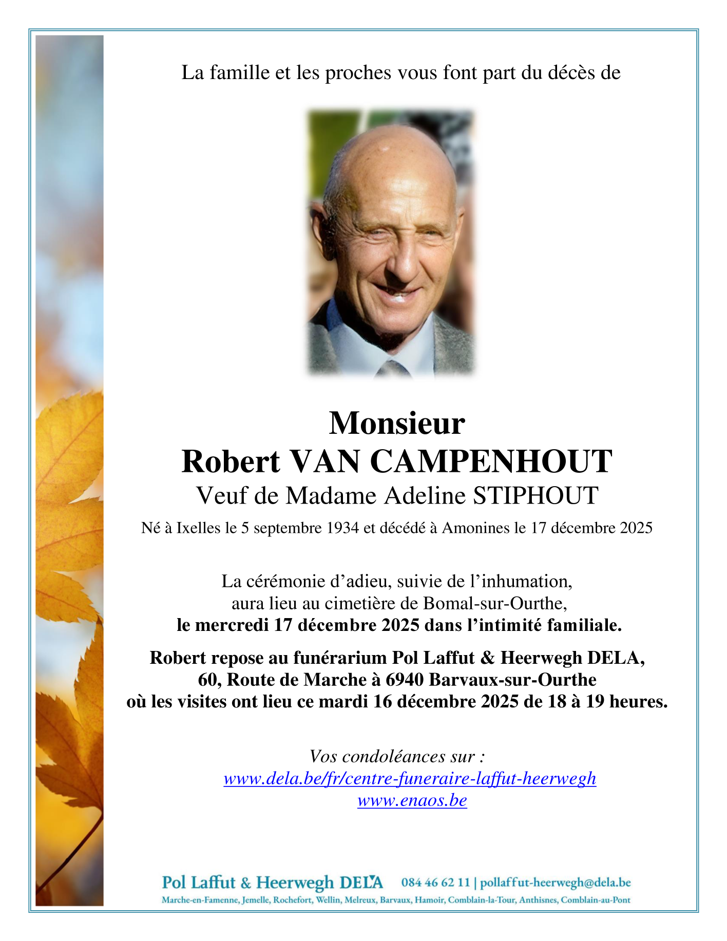 Décédé à Amonines (6997, Belgique) le dimanche 14 décembre 2025 à l'âge de 91 ans