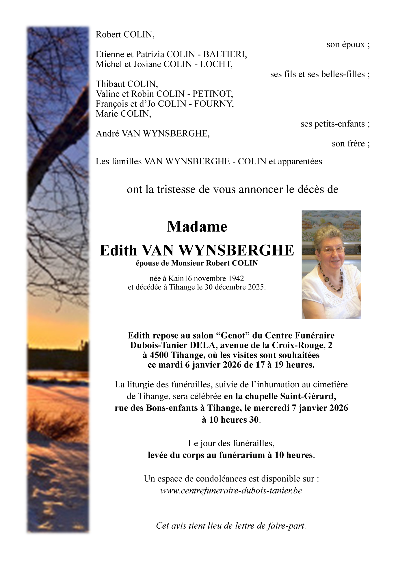 Fallecida en Tihange (4500, Bélgica) el martes, 30 de diciembre de 2025 a la edad de 83 años