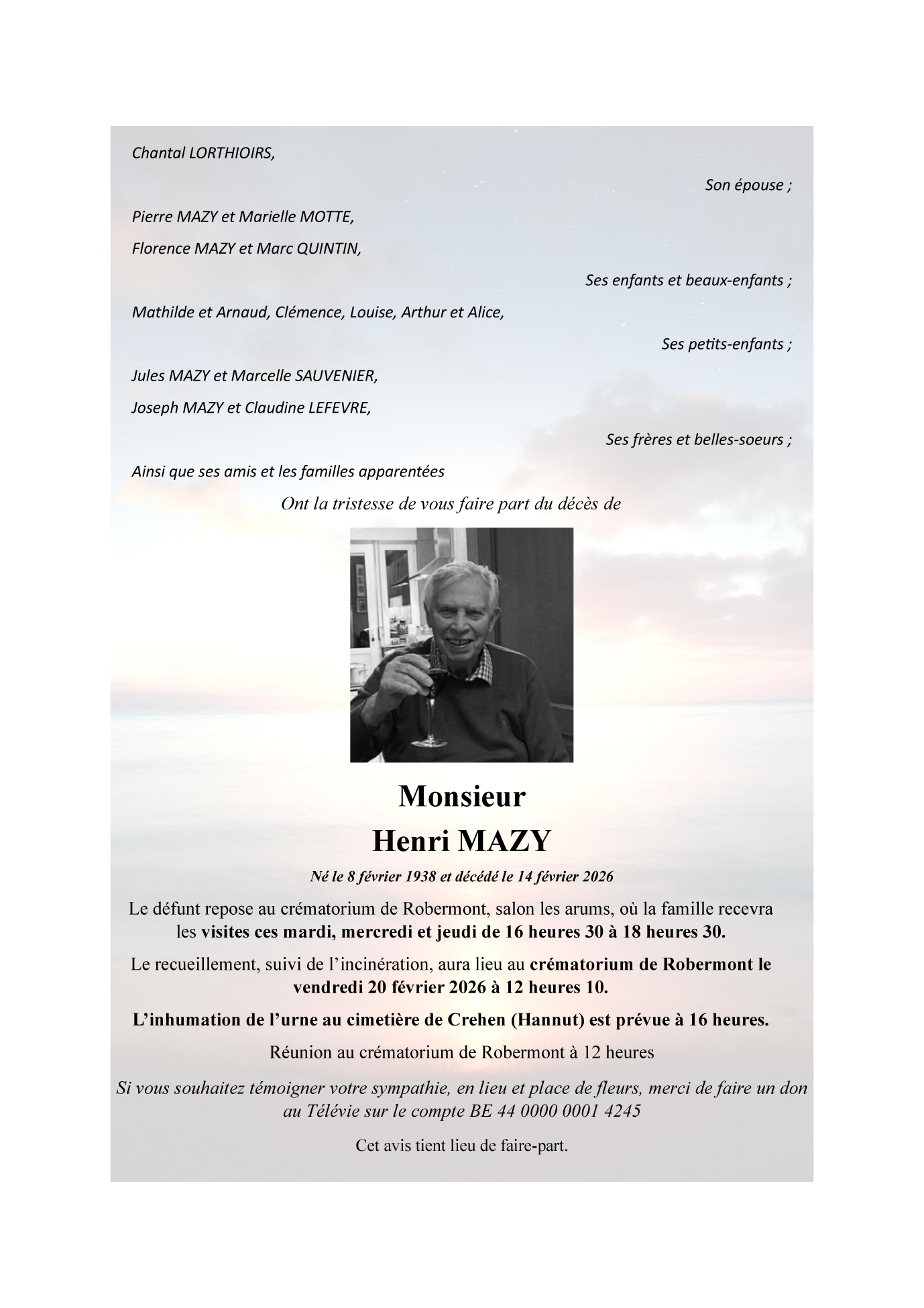 Décédée à Liège (4000, Belgique) le samedi 14 février 2026 à l'âge de 88 ans