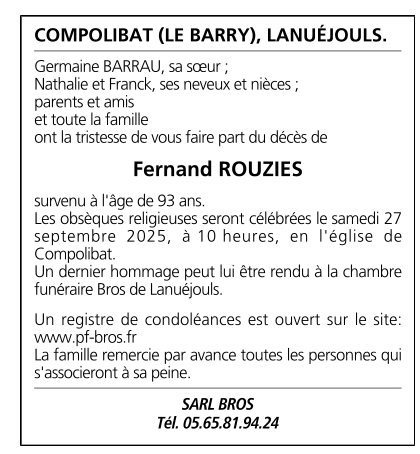 Décédé à Villefranche-de-Rouergue (12200, France) le jeudi 25 septembre 2025 à l'âge de 93 ans