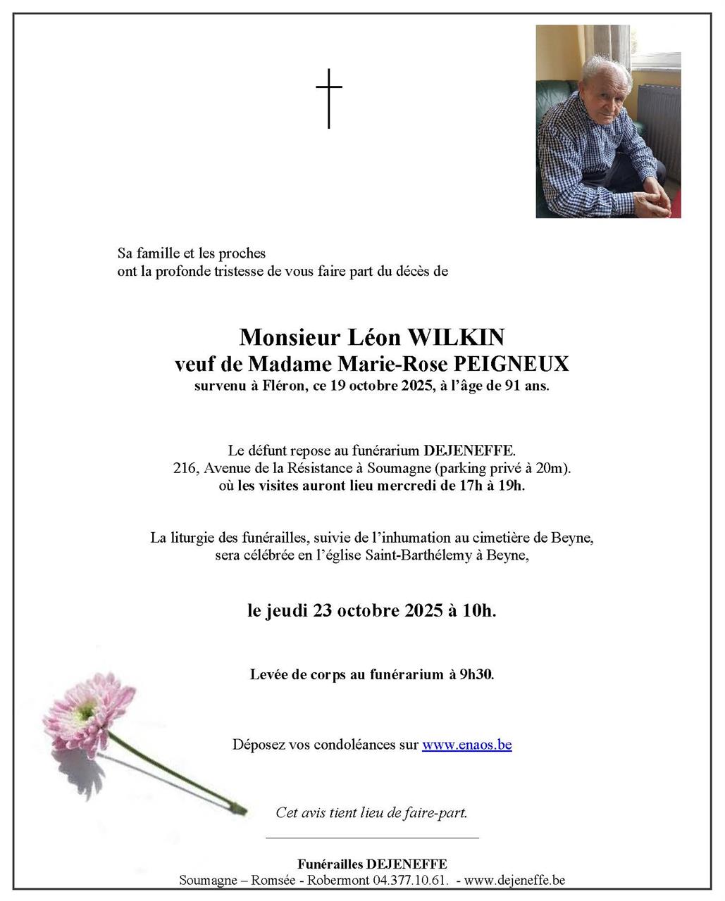 Décédé à Fléron (4620, Belgique) le dimanche 19 octobre 2025 à l'âge de 91 ans