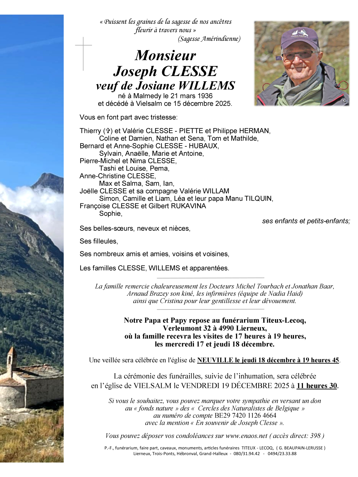 Overleden te Vielsalm (6690, België) op maandag 15 december 2025 op 89-jarige leeftijd