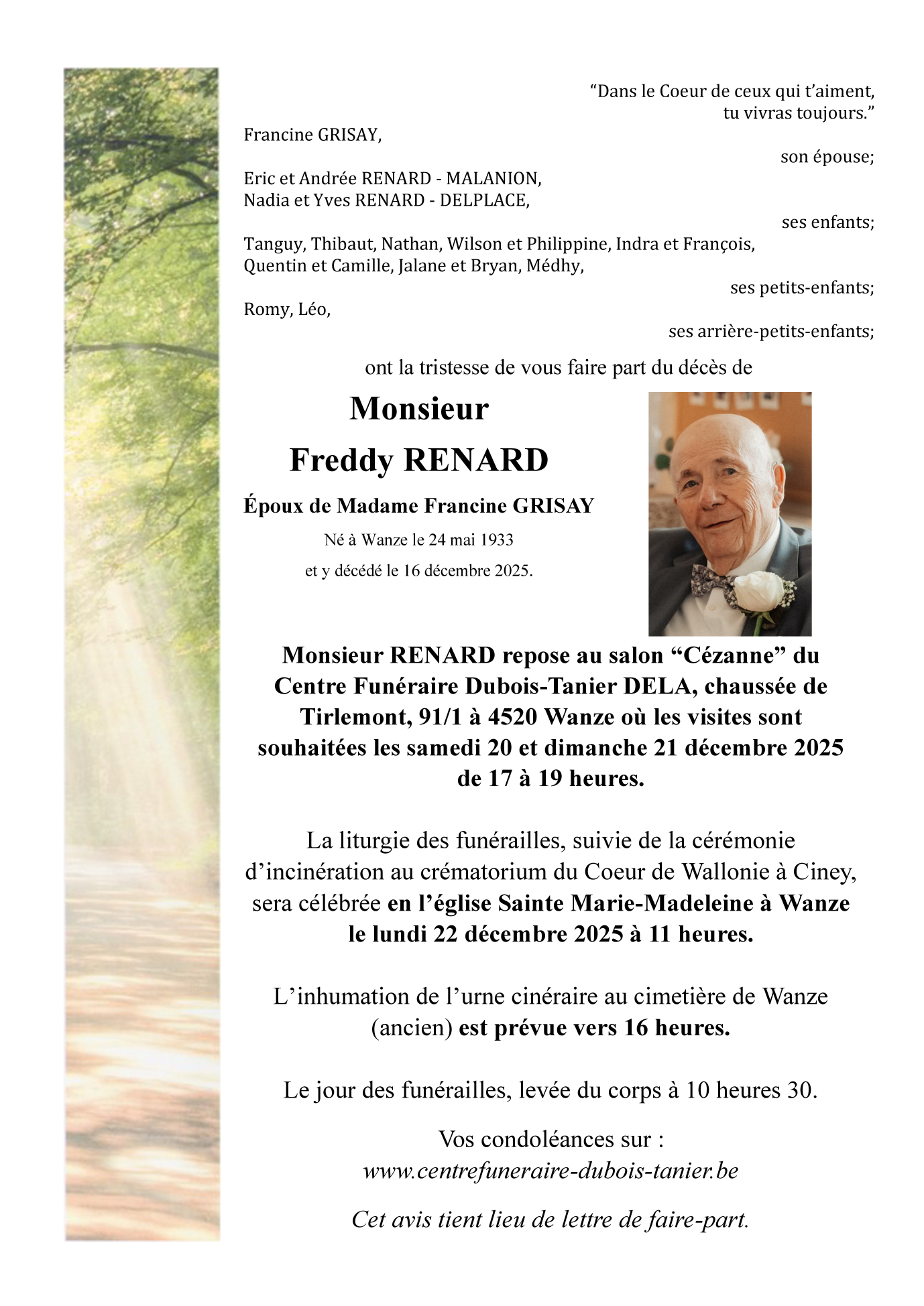 Fallecido en Wanze (4520, Bélgica) el martes, 16 de diciembre de 2025 a la edad de 92 años