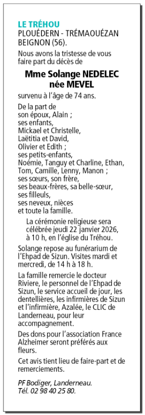 Epouse de Monsieur Alain NEDELEC