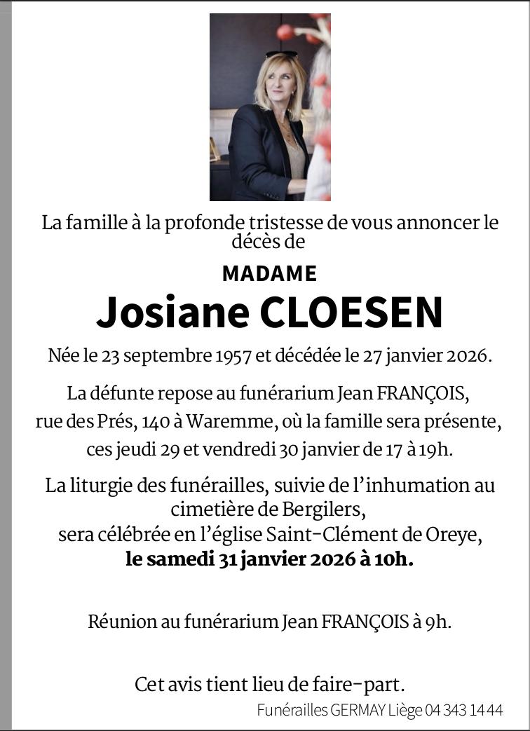 Décédée à Ninove (9400, Belgique) le mardi 27 janvier 2026 à l'âge de 68 ans