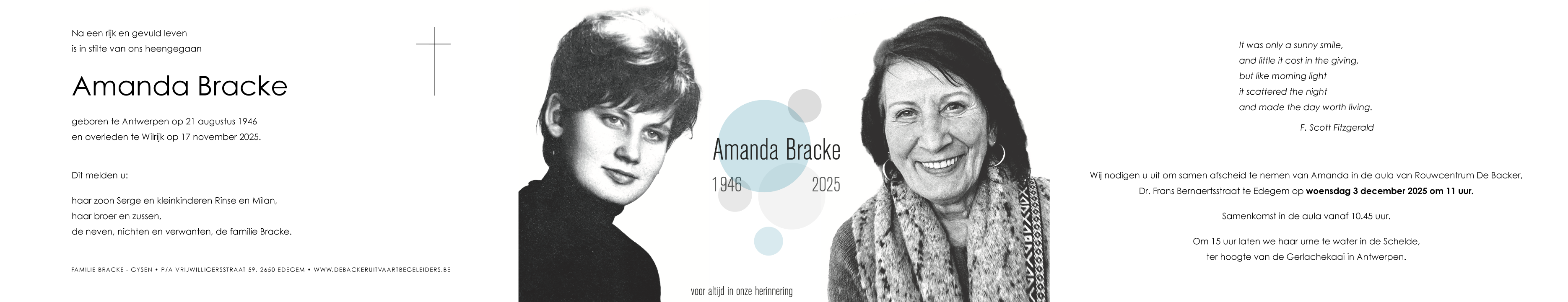 Décédée à Wilrijk (Antwerpen) (2610, Belgique) le lundi 17 novembre 2025 à l'âge de 79 ans