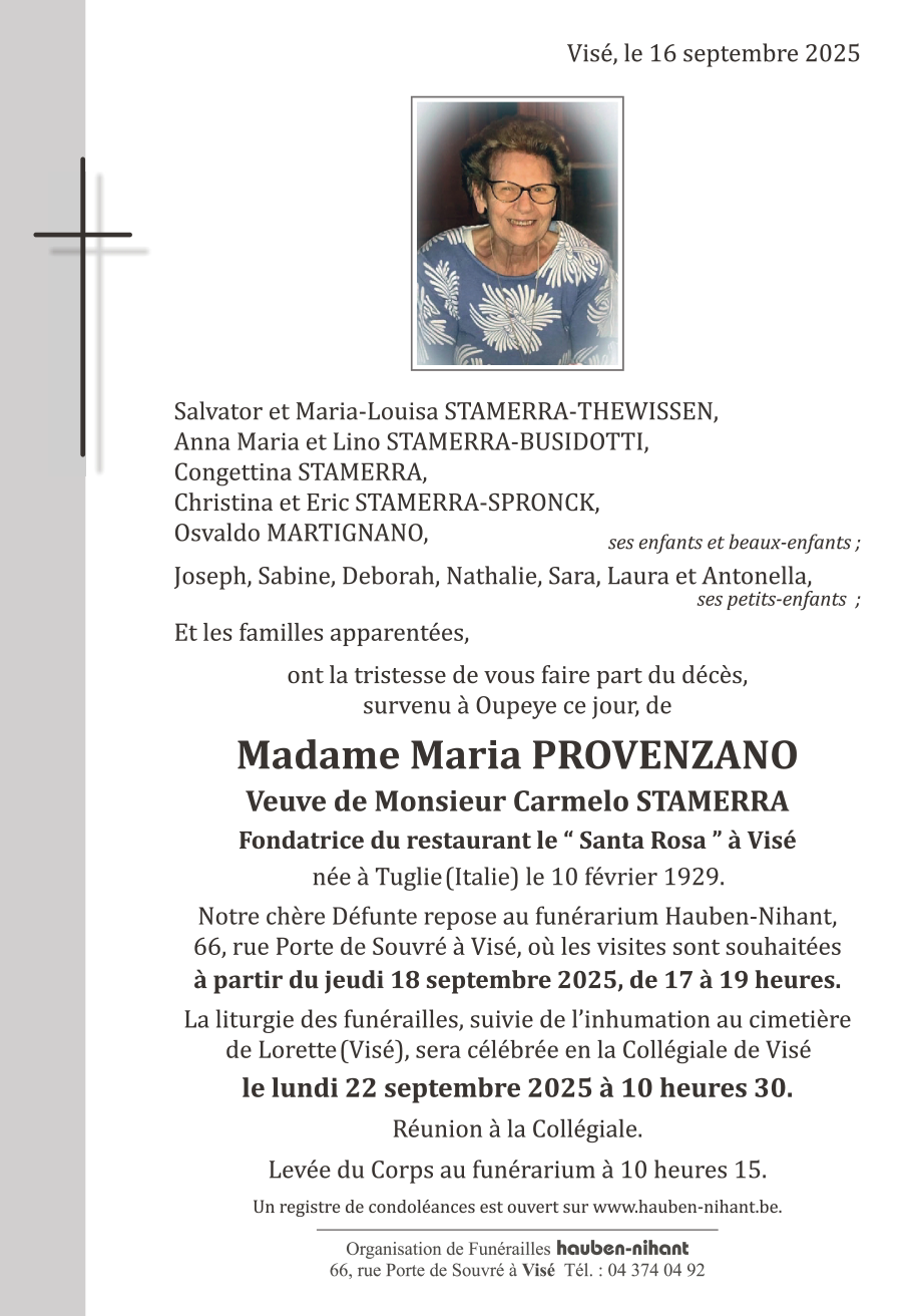 Fallecida en Oupeye (4680, Bélgica) el martes, 16 de septiembre de 2025 a la edad de 96 años