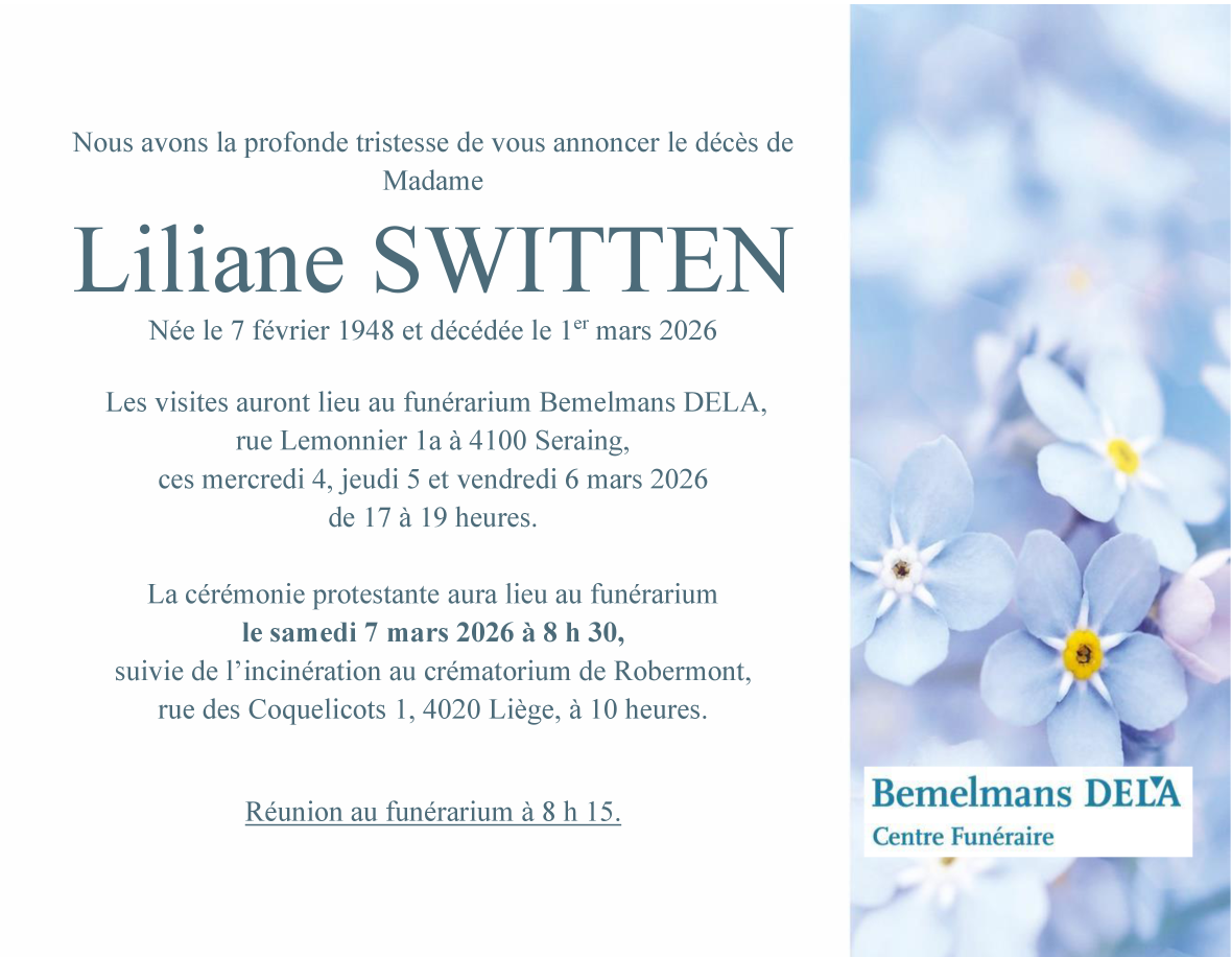 Décédée à Seraing (4100, Belgique) le dimanche 1 mars 2026 à l'âge de 78 ans
