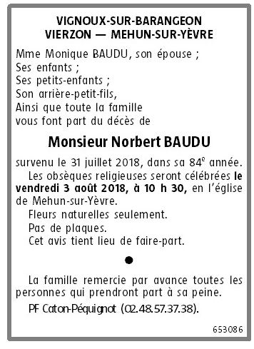 Décédé à Vignoux-sur-Barangeon (18500, France) le mardi 31 juillet 2018 à l'âge de 83 ans