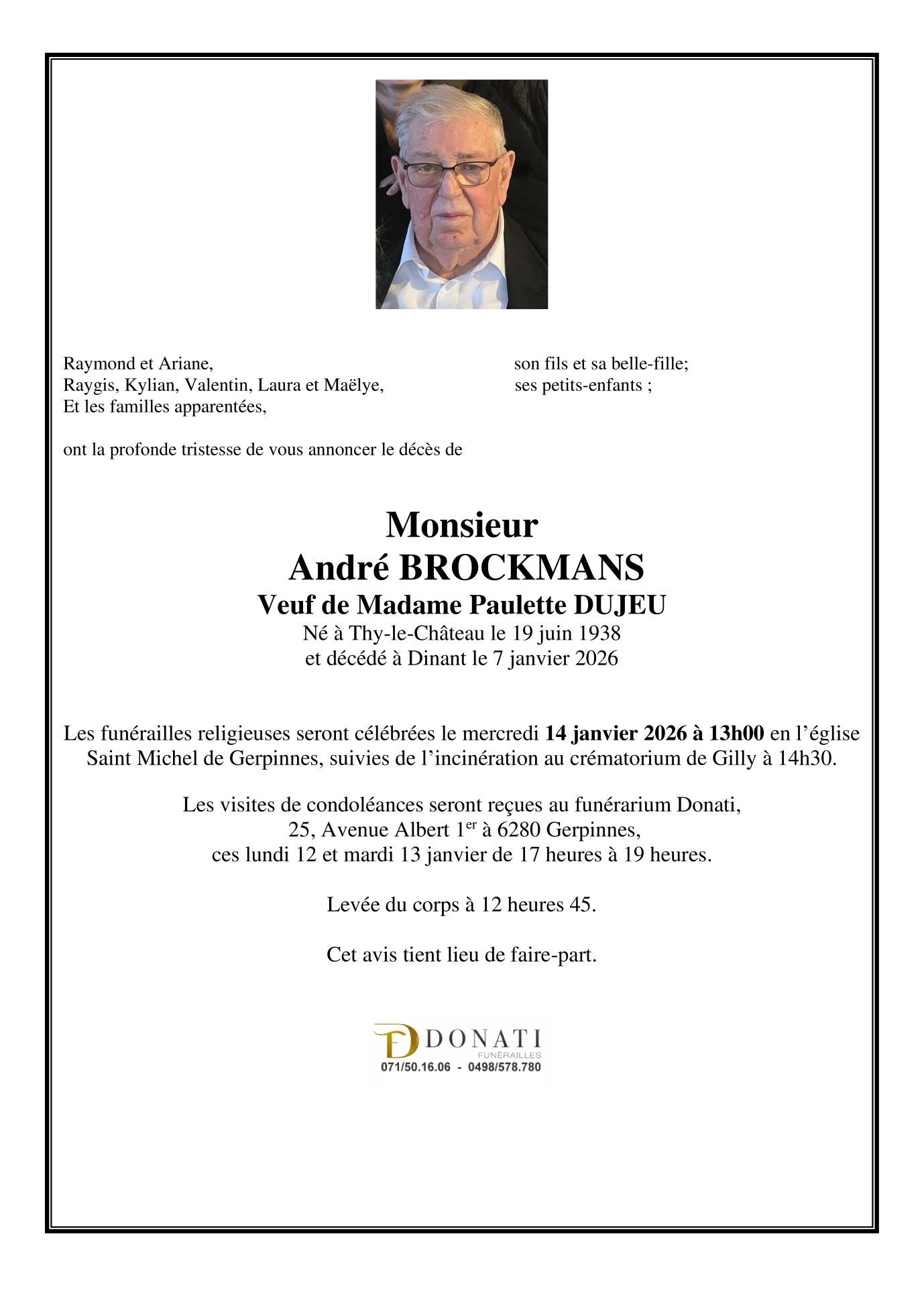 Fallecido en Dinant (5500, Bélgica) el miércoles, 7 de enero de 2026 a la edad de 87 años