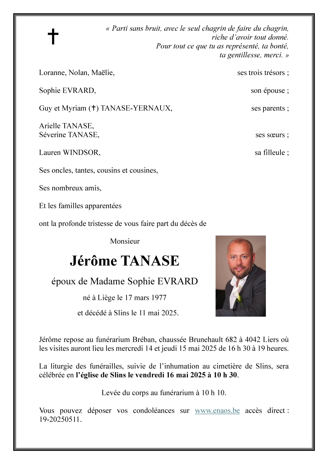 Décédé à Slins (4450, Belgique) le dimanche 11 mai 2025 à l'âge de 48 ans