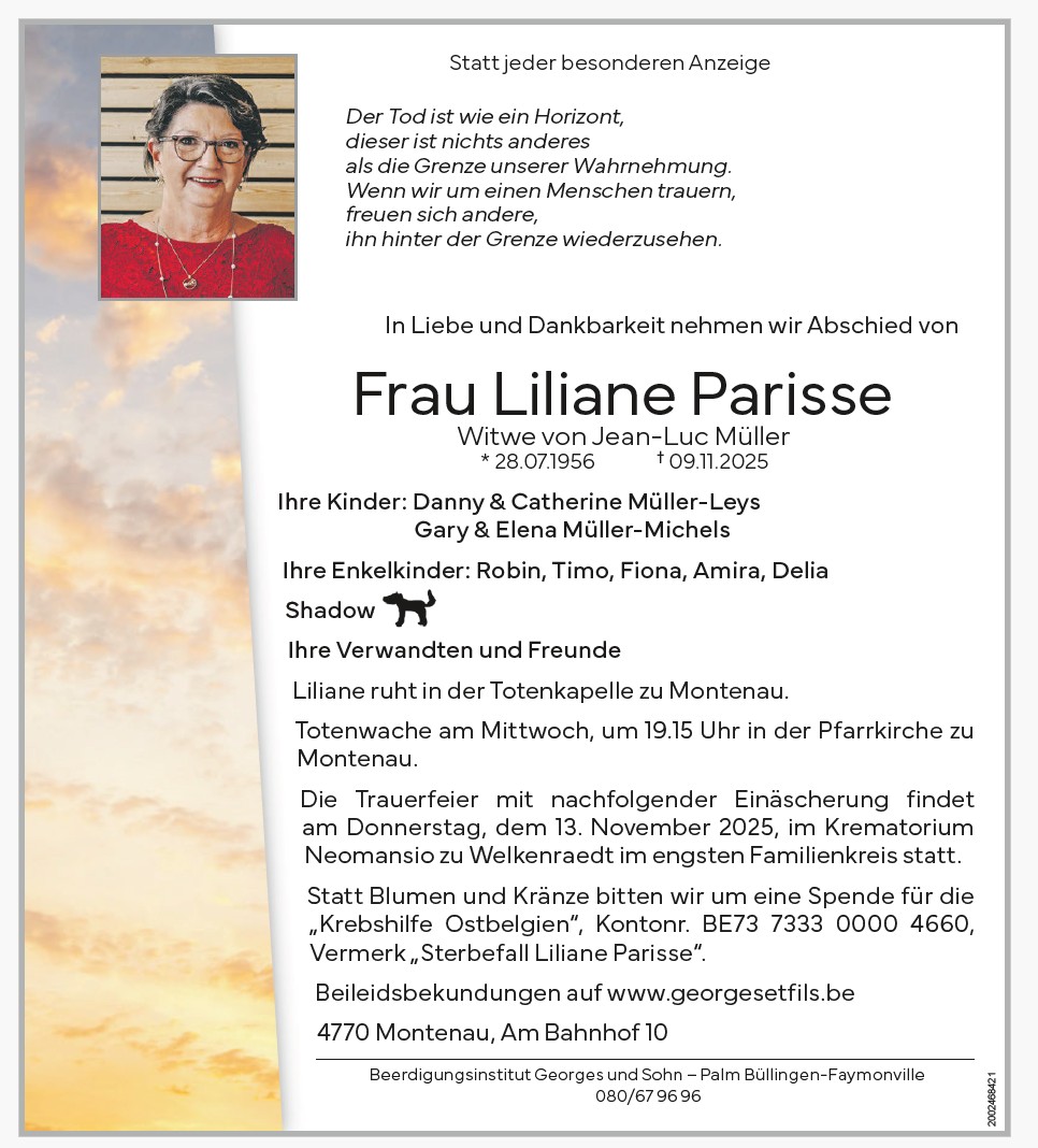 Décédée à Verviers (4800, Belgique) le dimanche 9 novembre 2025 à l'âge de 69 ans