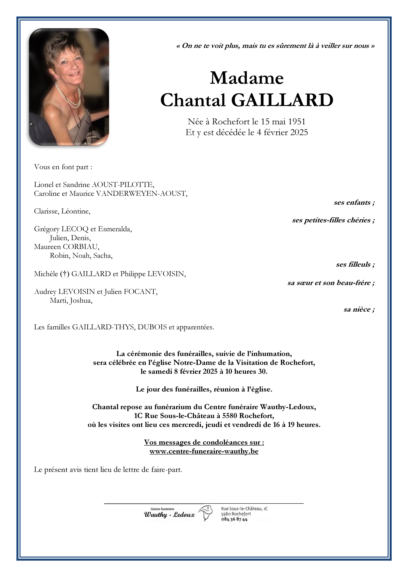 Died in Rochefort (5580, Belgium) on 04 February 2025 at the age of 73 years